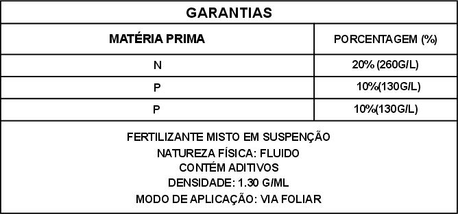 NPK 20-10-10 ESTE FERTILIZANTE LÍQUIDO COM ALTA CONCENTRAÇÃO DE NUTRIENTES CORRIGE CARÊNCIAS NUTRICIONAIS E AUXILIA NO CRESCIMENTO DAS PLANTAS. PODE SER USADO VIA FOLIAR E SOLO.